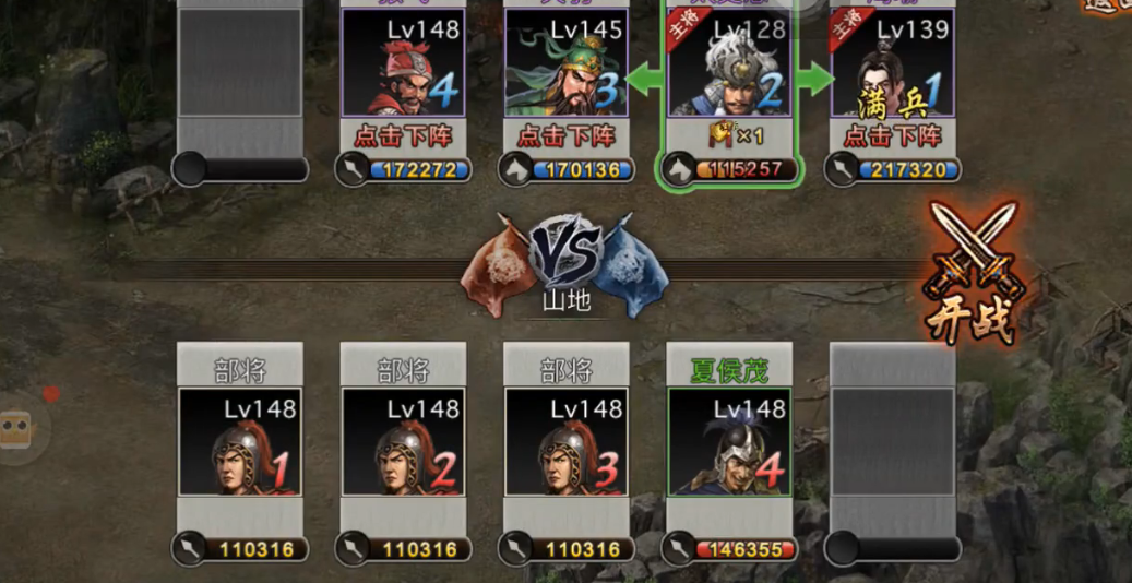 后半段重点在于张飞与诸葛亮的最终对决。张飞需保留烛龙战法至最后一排,确保能一次性击杀诸葛亮剩余兵力。若典韦或太史慈此前未完成目标,可尝试调整关羽作为替补,利用其战法为张飞提供护盾。山地地形对张飞的战术克制效果显著,需优先选择克制属性以提升输出效率。过程中若出现乱舞特效,可大幅缩短通关时间,但并非必需条件。