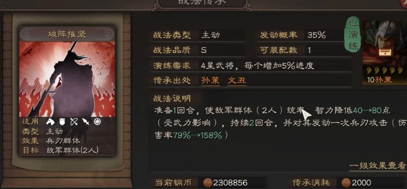 战法搭配方面,孙坚推荐带后发制人和自愈,这样能最大化他的嘲讽和生存能力,毕竟站得住才能保护队友。孙策的话建议带强攻或者手起刀落,配合他的自带战法能打出更高爆发。如果资源充足,孙策也可以考虑带瞋目横矛进一步提升输出。这套战法组合成本不高,效果却很稳定,特别适合资源有限的玩家。