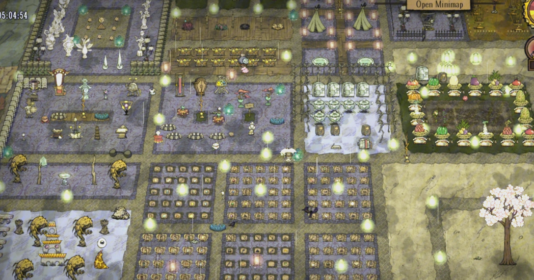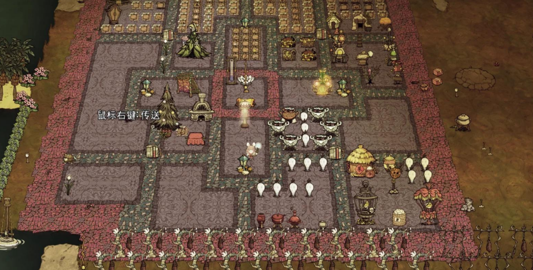 一开始可能就放个科技二本和几个箱子,但后期要加农场、晒肉架、鸟笼等设施,地方小了根本摆不开。最好选在开阔平整的地形,周围别太多树和石头挡着。灭火器的覆盖范围也要提前规划好,不然夏天一把火全烧光就尴尬了。