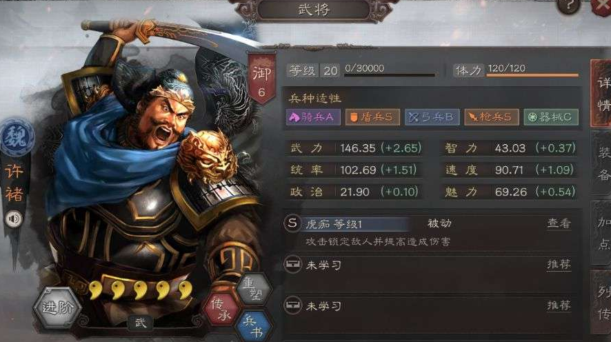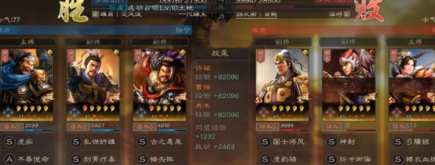 张飞通过群体伤害压低敌方血线,许褚则锁定残血目标触发破阵,形成滚雪球优势。若拖入后期,可依赖刘备、曹操等武将的恢复战法维持续航。许褚的拆解战法所向披靡是游戏中伤害率最高的全体兵刃战法,但需权衡是否拆解。