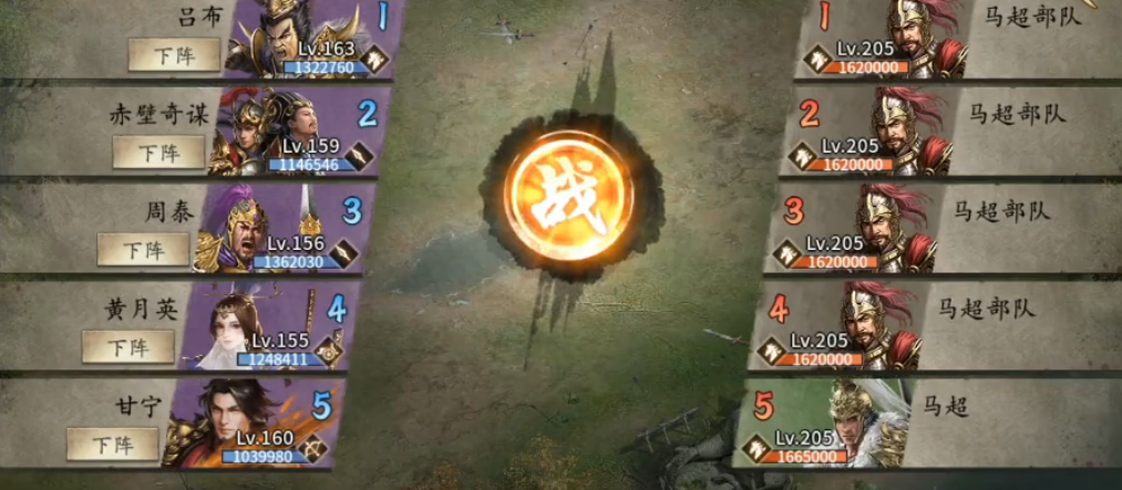 进入战斗后,注意马超的攻击模式,他的普攻和技能都有特定规律。甘宁最好排在第三位出场,关键是要挡住马超的技能释放时机。前两轮尽量保存兵力,避免过早消耗主力。徐晃和庞德需要稳扎稳打,不要急于输出,优先保证生存。祝融的技能可以打断马超的节奏,抓住机会反击。