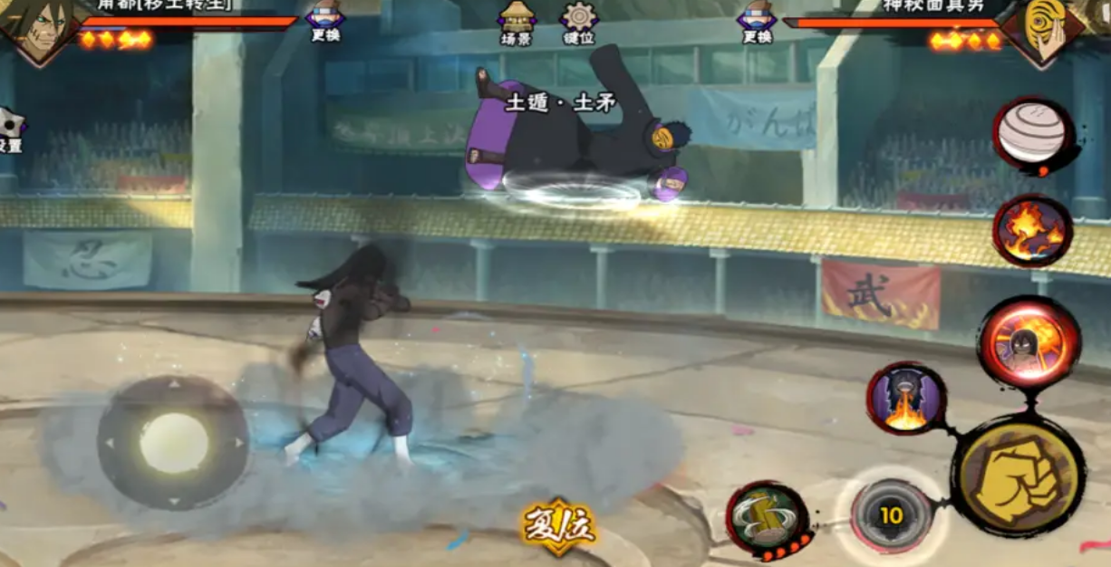 对抗角都需要特别注意其替身术的使用时机。角都的土矛防御具有短暂前摇,在预判其使用硬化时可以穿插抓取技破除霸体。面对角都的奥义技能,提前准备位移或无敌帧技能进行规避是关键,尤其当其集满四个面具怪时,奥义伤害达到峰值,必须通过快速横向移动或垂直起跳来躲避主要伤害区域。