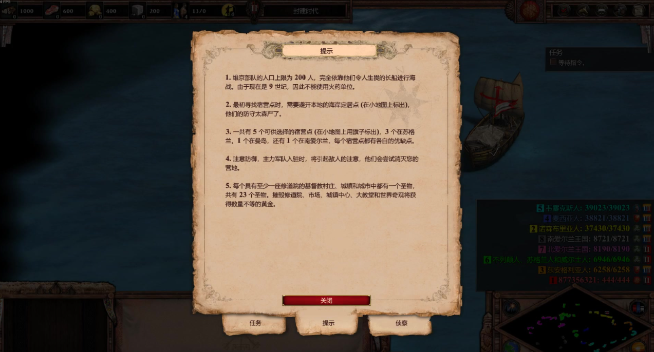 开局咱们得先选个好地方安家,约克城周边有几个不错的登陆点,建议选个资源丰富又容易防守的位置。优先派侦察兵把附近的羊和野猪找到,这样食物就不用愁啦。记得把羊牵回城镇中心附近,六个村民一起杀羊效率最高。木头和金子也要早点安排人采集,毕竟造兵和升级科技都离不开这些资源。