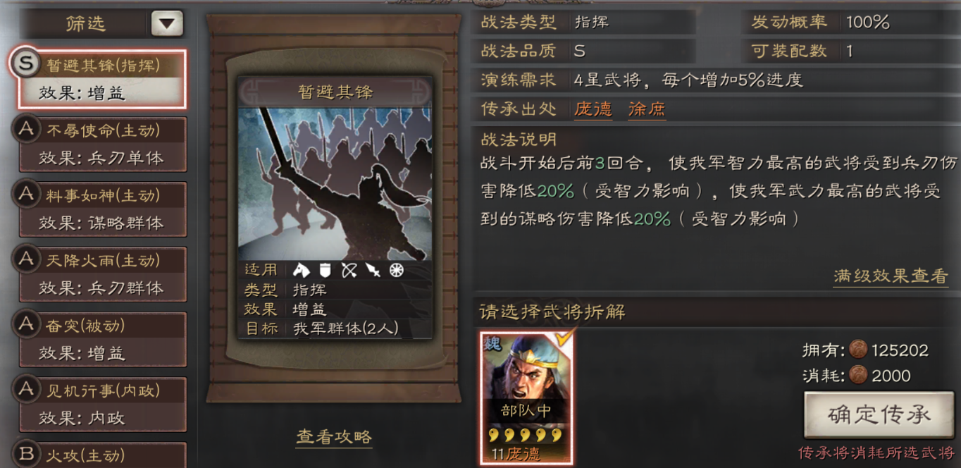 若陆抗处于高爆发队伍(如陆逊主核阵容),优先选择军形系兵书,通过惜兵爱民提供续航,铁甲降低兵刃伤害,防备减少谋略伤害,确保其存活以持续触发战法效果。若队伍依赖多回合作战,九变系的临敌不乱可净化负面状态,救主能进一步保护主将,但需注意与分担机制可能存冲突。