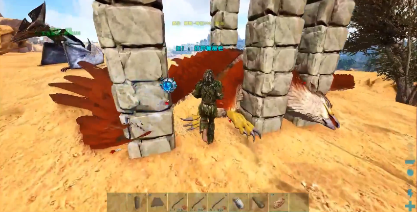找到狮鹫的位置是关键,它们通常在高山或悬崖附近活动,比如地图左上角的远峰山脉。建议提前造个困龙房,用柱子搭三层高,留个门框和恐龙门。骑上翼龙把狮鹫引进去,然后赶紧关门,这样就能安心用麻醉箭或麻醉镖把它射晕。注意它的眩晕度掉得很快,得多准备黑果子或麻醉药来维持。