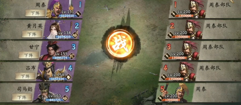 水域地形是周泰副本的难点之一,需要提前调整好武将站位。马超和太史慈在平原地形有加成优势,尽量让他们在合适时机出场。马超第二个出战可以格挡敌方技能,清掉残兵后放技能拼掉剩余兵力。黄忠登场直接放战法清理残局,保证太史慈满兵收尾。太史慈连续释放战法能造成大量伤害,最后用4排满兵对阵周泰残血部队,压力会小很多。