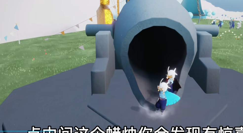 进入办公室内部后,咱们会发现左边有个小餐厅,推开门就能进去。收集完蜡烛后可能会遇到NPC,这里可以兑换TGC蓝色斗篷呢!沙发上虽然不能坐,但蜡烛记得要收集呀,大概能拿到半根蜡烛的量。抬头看天花板有门守卫大炮,点燃蜡烛就能变身炮弹发射出去,飞得又高又远,这个玩法真的会上瘾!办公室顶上还有一个超大的巨人,站在旁边会显得特别渺小。