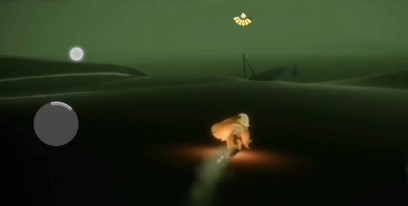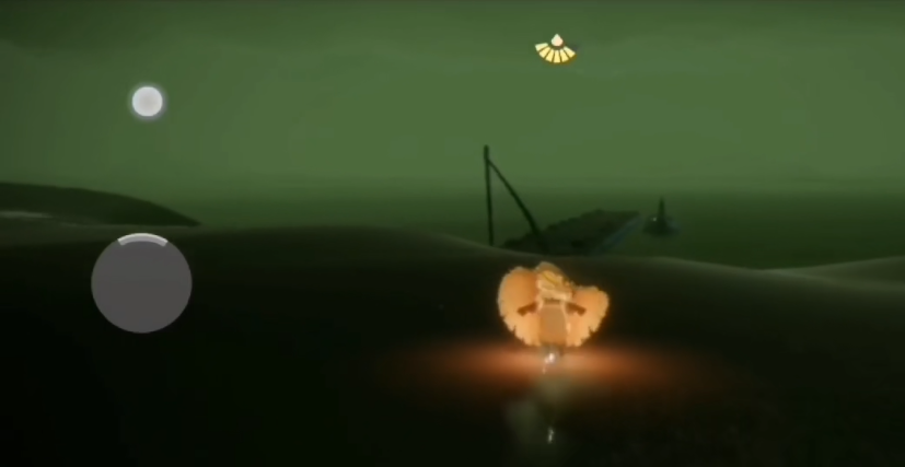 小船会带咱们穿过一片星河,动画结束后就到了隐藏图的入口。下船后别犹豫,朝着正前方的山坡飞过去,翻过山坡就能看到失落方舟的全貌啦!这里的地形有点像搁浅的古代船只,周围散落着破败的桅杆和旗帜,左下角还会弹出失落方舟的提示字样。如果第一次来可能会觉得有点荒凉,但其实这里藏着超多有趣的先祖任务和收集元素哦。