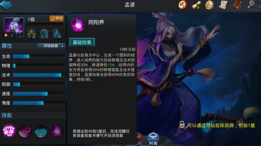 孟婆作为乱斗西游中的仙族法师英雄,定位为远程辅助型角色,兼具控制与消耗能力。其核心机制围绕延迟伤害与群体控制展开,技能组合包含彼岸花、鬼枯藤、孟婆汤三大主动技能,配合仙之元被动形成独特战斗风格。所有技能均需精准把握释放时机,尤其依赖对战场节奏的预判能力,属于操作上限较高的战术型英雄。