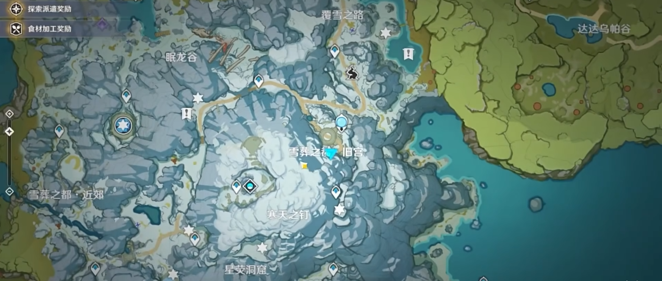 进入葬雪之都旧宫,首先需要收集三个宝匣和八个石碑。三个宝匣分别位于眠龙谷下方、覆雪之路右下角的小岛以及星荧洞窟左上角。拿到宝匣后,可以开启一个密室,里面藏有第一个石碑。剩下的七个石碑分布在雪山各处,比如七天神像下方、星荧洞窟顶峰等位置。找齐八个石碑后,前往七天神像附近的密室大门,启动机关就能进入旧宫了。
