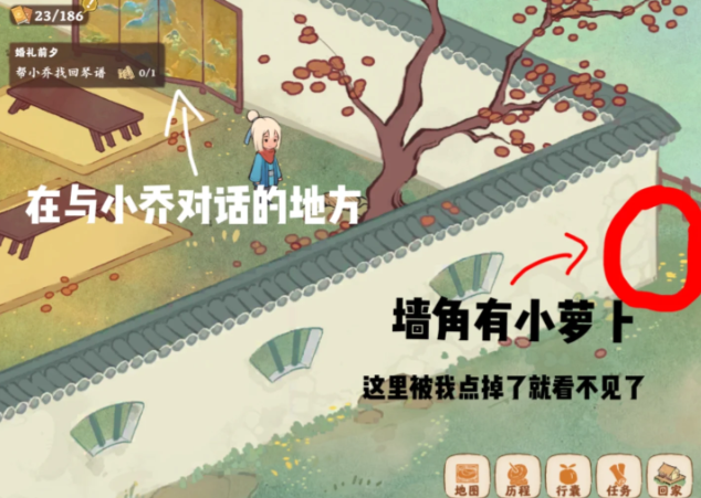 乔府后院是个重点搜索区域,尤其是围墙角下,那里经常藏着萝卜人。南市右上角和军营最右边的罐子里也可能躲着罐子萝卜人,记得敲敲罐子看看。如果发现菜牌可以翻动,那后面说不定就藏着一个打瞌睡的萝卜人,轻轻点一下就能把它叫醒。
