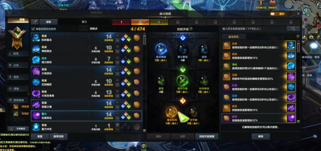 核心技能配置包含粉碎重击、强力连击或弹射凿击、忍耐痛苦及大地吞噬者。粉碎重击作为唯一能回复重力核心的技能,建议点到4级解锁瞬间打击天赋;忍耐痛苦提供嘲讽与免控效果,需优先点满;大地吞噬者则是最高虚弱值技能,蓄力伤害突出。位移技能可选择突进上挑或凌空一击,前者强化机动性,后者附带12%破甲效果。反制技能需根据副本机制选择,强力重击释放更快且附带破甲,弹射凿击则具备霸体特性适合应对击飞机制。
