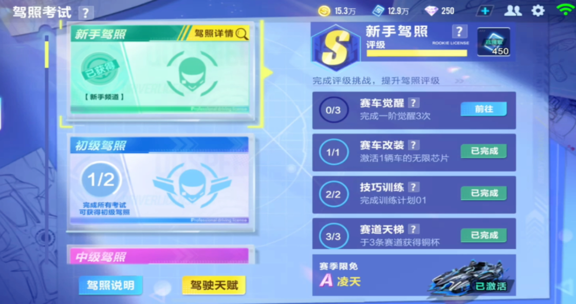 通过驾照考试系统进入训练是另一种常见方式。在主界面点击训练/新驾照按钮切换到考驾照页面,选择对应级别的驾照后,系统会提供该阶段所需的技巧教学。驾照训练通常分为竞速和道具两大类别,每个类别包含从基础到进阶的系列课程。完成特定课程后,玩家可以解锁更复杂的训练项目,这种渐进式设计有助于玩家系统性提升操作水平。训练过程中可以随时查看教学视频,部分高级技巧还提供慢动作回放功能。