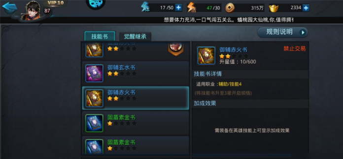 觉醒材料的积累是开启四技能的关键环节。玩家可通过参与三界平乱活动免费获得基础觉醒材料,多余的觉醒材料可用凌云璧在书市进行交易。技能书激活后还需使用灵气材料进行喂养,当喂养进度满值后,需消耗4本狗粮书和觉醒符进行升星操作。技能书达到三星后将开启领悟度系统,可消耗领悟材料提升附加效果。