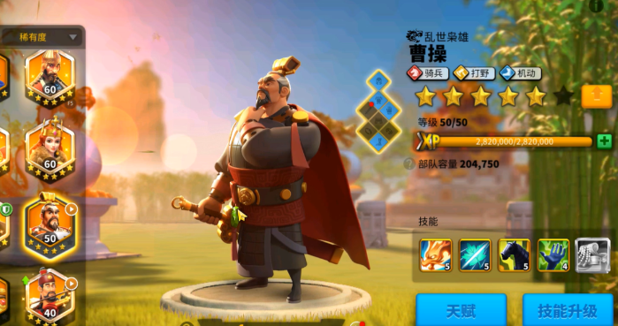 多收集一些强力统帅,比如孙武、曹操这类紫将和橙将,他们的天赋和技能点满后能带来巨大战力提升。平时记得多打野怪和活动,攒够经验书和雕像给统帅升级。部队方面建议专精一种兵种,比如纯骑兵或纯步兵,这样加成效果比混搭更强。没事就多训练士兵,兵力越多战力越高,打架时底气也更足。