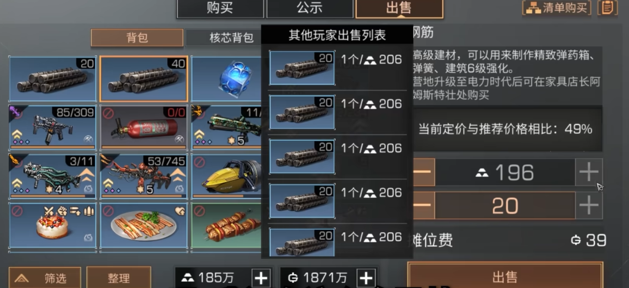 交易之城是赚金条的好地方,尤其是卖小树枝这类基础物资。小树枝需求量大,价格稳定,一组20个上架后扣除税率也能净赚100多金条。如果每天上架几组,积少成多,一周下来也能攒不少。记得关注市场动态,有时候某些半成品或特殊材料会突然涨价,抓住机会上架能赚更多。