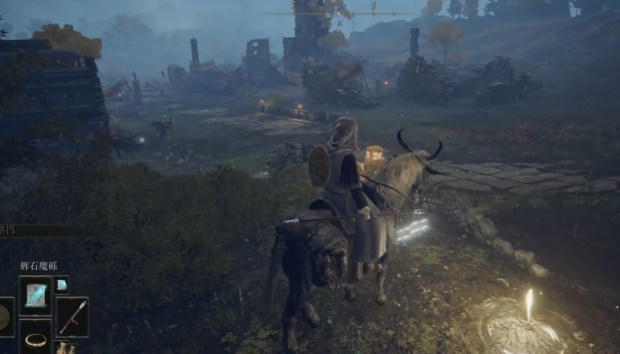 获得灵马哨笛是探索效率提升的关键步骤。在艾雷教堂激活赐福点后,夜晚返回会遇见魔女蕾娜并获得召唤坐骑的骨灰铃铛。坐骑允许玩家快速穿越地形并实施马上战斗,但地下区域无法召唤。建议优先激活沿途赐福点作为传送节点,风暴山丘的关卡前方赐福点会触发梅琳娜剧情并解锁升级功能。探索时需注意地图上的黄金树图标,其根部往往存在重要道具或精英怪。