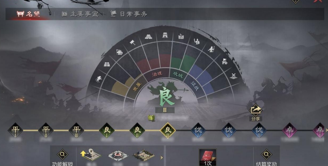 每100点名望能增加1块领地上限,所以平时要多做名望任务。就算下线也别担心,系统每5分钟会自动送1点名望。记得早点把社稷坛建起来,这个建筑能突破名望上限。不过要注意领地上限最高到450块,后期就别死磕名望了。建议把名望值除以100就是当前能占的地块数,这样心里有本账才不会白忙活。