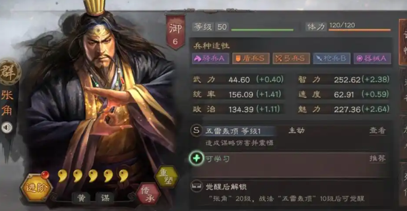张角通常需要带上太平道法和士别三日,太平道法能让他自己的五雷轰顶发动几率更稳定,输出更爆炸,士别三日则让他在面对敌人时更安全,还能在后期补一波不低的伤害。于吉的战法选择比较灵活,很多时候为了队伍的防御,会让他带藤甲兵来抵抗那些菜刀砍人队的物理伤害,另一个战法可以带草船借箭或者锋矢阵、御敌屏障这些来加强全队的防守或者辅助作用。左慈的定位是治疗和解控,所以刮骨疗毒几乎是必备的,能精准抬血和解掉负面状态。另一个战法可以配武锋阵或者锋矢阵,这取决于你把张角还是于吉当主将。
