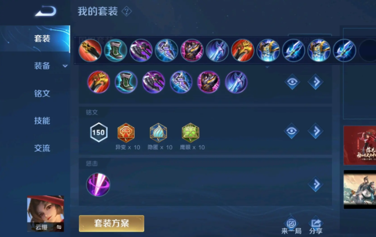 云缨这英雄的强化普攻有个特别的地方,像攻速、吸血、暴击这些属性对她那几下带特效的平A是没加成的,只有法球效果能触发,所以配铭文的时候思路就很直接了,咱们就盯着物理攻击力、物理穿透和移动速度这三个属性堆就行。最省心也最通用的选择就是一套百穿铭文,具体就是蓝色带10个隐匿,绿色带10个鹰眼,红色带10个异变。这套铭文给的攻击力和穿透最高,不管你是走对抗路对线消耗,还是打野快速刷怪,效果都很好,那10%的移速加成也让云缨跑图支援更灵活。对云缨来说,用其他花里胡哨的铭文反而可能不如这套简单粗暴的来得实在。