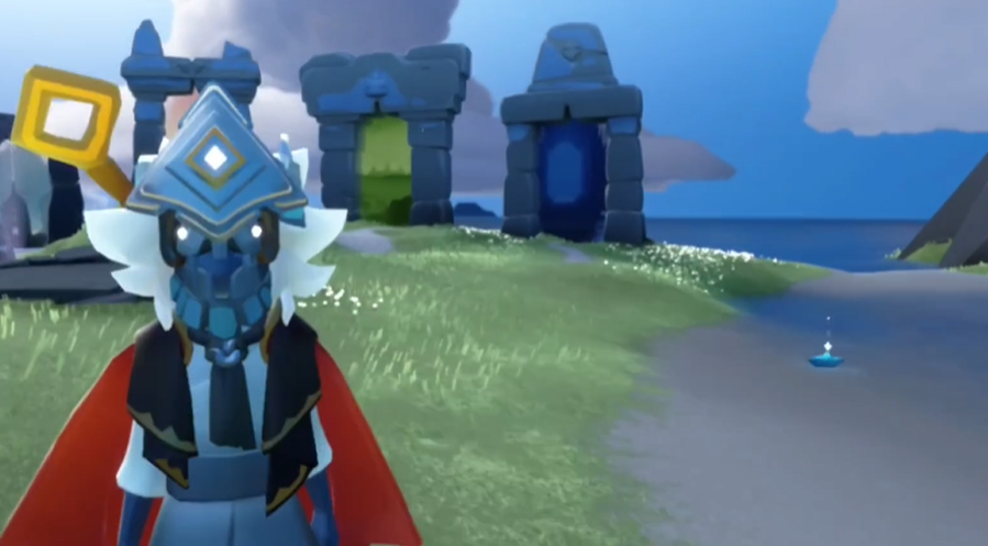 裤子方面选择面很广,但考虑到整体风格的协调,一些设计感强或者色调偏深的裤子会比较搭。背饰可以说是点睛之笔,像一些暗色系或者带紫色调的乐器、提灯、烟花棒等小物件,都能和面具的风格完美统一。游戏里像遇境这样的地方,光线比较柔和均匀,适合检查整体配色是否和谐。稍微暗一点的场景其实更能突出风先知面具的神秘感和细节纹理。另外很重要的一点是,高画质下这个面具的纹理会清晰很多,搭配起来也更有质感。