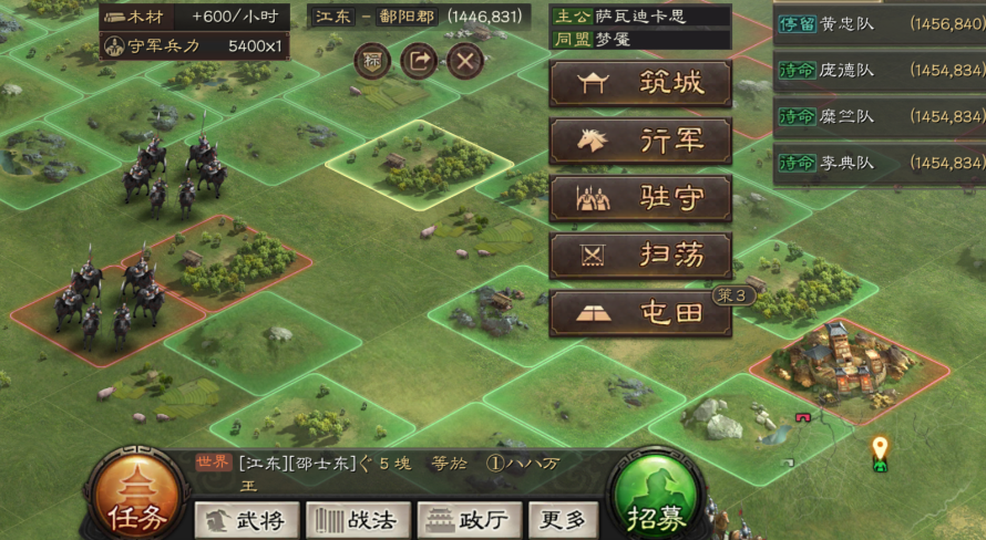 驻军的防守范围比你想象的要大一点,它不是只保护自己脚下那一格地。驻守部队能保护自身所格子,以及紧挨着它的周围一格的所有友方地块。比如说你在一个高级资源地上驻了军,那么跟这个资源地相连的你自己或者盟友的地,也能享受到保护,这样就能形成一个小范围的防御圈,让敌人没那么容易偷你的地。不过这里有个限制要注意,普通的资源地最多只能同时驻扎五支部队,而像主城、分城这类建筑则可以无限驻守,所以关键位置的防守你可以多堆点兵力。