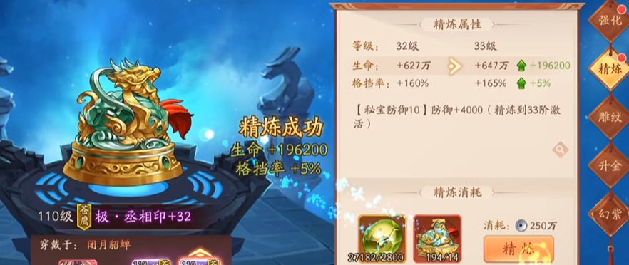宝物精炼之后想继续往上提升等级,核心思路...