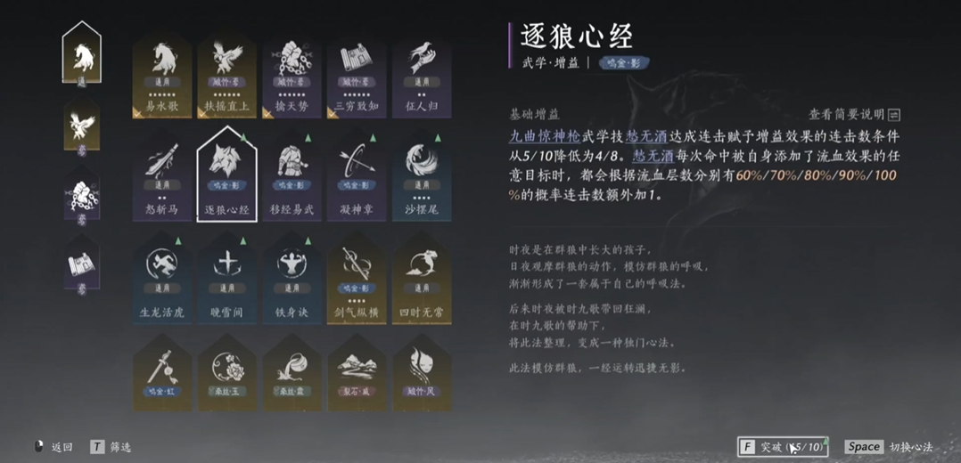 心法搭配需要结合武器类型和实际战斗需求来优化效果。近战武器往往适合选择提升攻击力和抗击打能力的心法,而远程武器则优先考虑增加瞬时伤害或精准度的选项。如果战斗中频繁使用奇术,可以搭配帮助恢复精元的心法以保证输出流畅;若依赖处决技,则选用能在处决时恢复生命值的心法来增强续航。根据主力武学技能选择对应强化心法,能最大化核心输出的威胁性。
