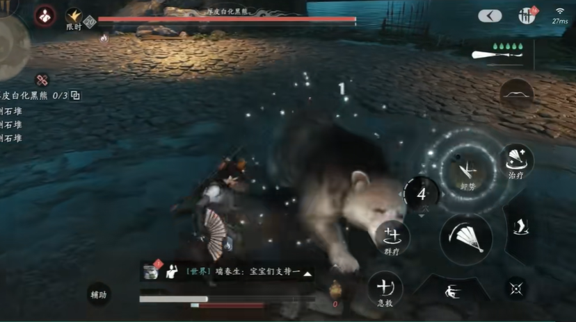 成功将黑熊推向三个石头堆后,黑熊会被击败,同时每个被击碎的石头堆都可能包含一个宝箱,玩家可以开启获得长鸣玉等奖励物品。这场战斗强调了在特定情境下利用环境互动的重要性,而非依赖传统攻击模式。玩家应熟悉乾坤挪移的施展时机和方向控制,以高效完成挑战并获取收益。