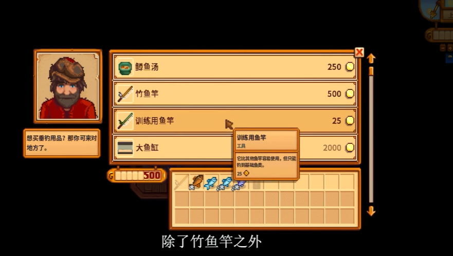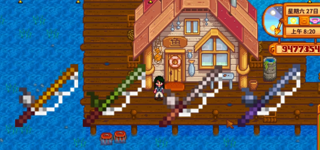 掌握钓鱼的基础操作是提升效率的前提。钓鱼始于一根鱼竿,游戏初期渔夫威利会赠送一根基础的竹鱼竿。站在水边,长按鼠标左键或相应按键进行抛竿,力度条越满则抛得越远,当