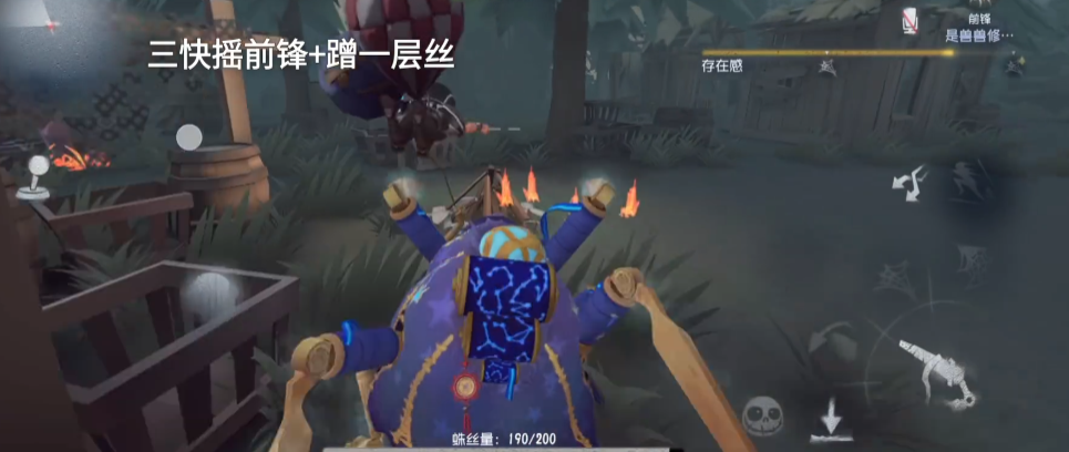 吐丝技能在追击和干扰中极为关键,其远程特性可打断求生者治疗、破译等交互动作并叠加蛛网缠身状态。当求生者处于两层蛛网缠身时,吐丝命中会直接叠加至三层,大幅削弱其行动能力;升至二阶后长按吐丝可瞬间使目标陷入三层状态。吐丝可穿透低矮障碍物,在板窗博弈中即使被砸板命中,蛛丝仍会向前发射命中求生者。存在感提升至二阶会刷新吐丝冷却,把握时机可连续吐丝接普攻实现快速击倒。