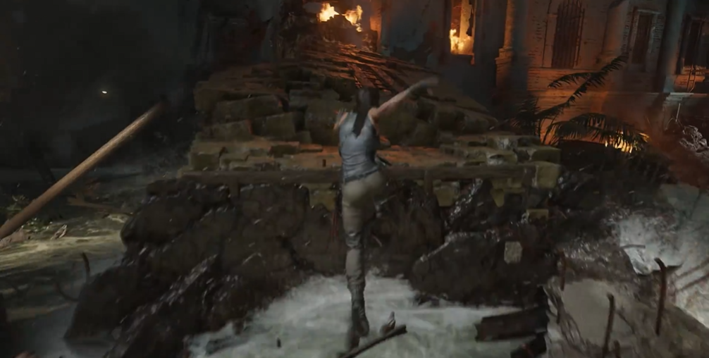 攀爬房屋外墙时专注观察凸起石槽和木板路径,外墙起跳后迅速左移→跃至木板→转向右侧凸槽→避开火焰攀至窗口上方。操作中避免在倾斜或着火处停留,墙体坍塌前需保持连续移动。到达屋顶即触发剧情完成关卡,全程优先利用固定物体缓冲冲击力。