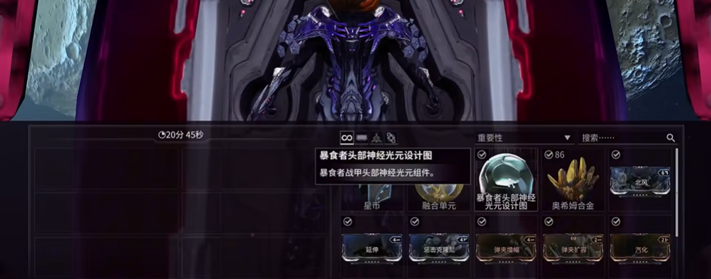 暴食者的部件蓝图需要通过完成欧罗巴星球上三个特殊的任务节点获取。要开启这些任务,你首先需要前往任意中继站的均衡仲裁者房间,使用生息精华兑换三个部件定位装置,一共需要75个生息精华。而肥宅甲的总设计图可以直接在游戏商城使用星币购买。