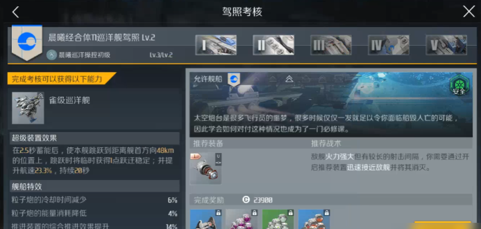 巡洋舰驾照的考核是游戏进程中的关键环节,解锁巡洋舰驾驶资格意味着玩家可以驾驭舰队中承上启下的中坚力量,其考核难度相比护卫舰和驱逐舰有显著提升,需要玩家在舰船理解与实战操作上做好充分准备。驾照考核遵循从T1到T3的进阶路线,每一级驾照都会解锁更多的舰船加成、装置和组件槽位,为后续参与更复杂的战斗任务奠定基础。