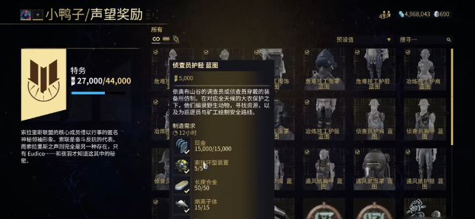 成功与小鸭子对话后,你就会正式开启名为索拉里斯之声的声望系统界面,在这里你可以查看当前的声望等级和能兑换的物品列表。提升声望的主要方式就是向他提交各种特定的材料,其中最主要的是在金星平原获取的几种环形装置。普通环形装置值1000声望,圣油环形装置值6000,天蓝环形装置则高达12000声望,这些材料构成了你升级和兑换奖励的基础。