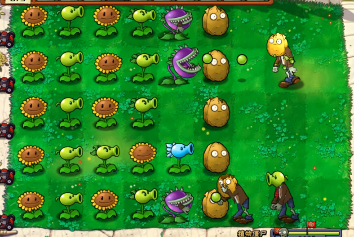 面对密集僵尸群时,樱桃炸弹的清场作用至关重要,但需注意保留至少一颗应对突发状况。地雷作为低成本控场手段,适合填补防线空缺或拖延时间。坚果墙的摆放位置应尽量靠前,为后方植物争取输出时间,同时需及时替换被击破的坚果。中期阶段需持续强化中间行的火力,优先将普通豌豆射手升级为三线射手。上下两路的大蒜被破坏后必须立即补充,确保僵尸始终被引导至中间火力集中区域。