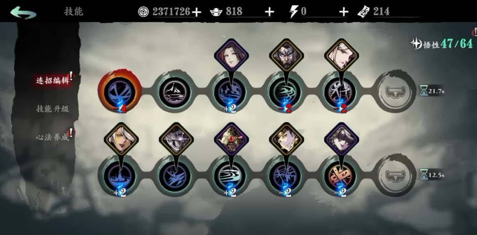 心法搭配需要配合魔堡故人、蛇眼和铁诞的羁绊效果。它们能减少套装需求件数,让你空出格子带其他强力散件。黑白剑心法提供的高额暴击和穿透加成很适合魔弦,如果觉得生存压力大,可以带芳华邪后这类缩短冷却的心法。副心法尽量选加攻击力或技能伤害的,虽然不激活技能效果,但基础属性加成对提升伤害很有帮助。
