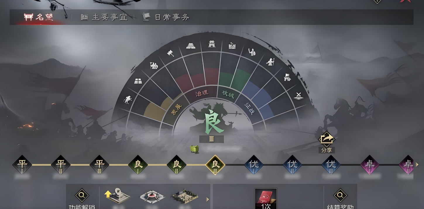 屯田是最直接的石料获取方式,跟着任务走,先打下1级地和2级地,有了领地后就能派兵屯田了。建议优先选择2级地,因为它的石料产量比较稳定,后期再换成更高级的地块。记得把兵力补满,这样可以缩短屯田时间,提高效率。多观察地图,找到石料产量高的地块再屯田,这样收益会更高。完成任务也是获取石料的重要途径,尤其是那些奖励石料的特定任务,比如铁壁营和尚武宫的任务。