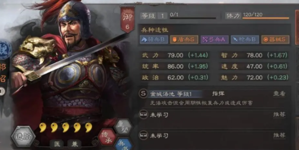 高顺在游戏中是个争议较大的武将,他的核心价值在于自带战法陷阵营。这个战法能将盾兵进阶为特殊兵种,提升全队武力和统率属性,并在前三回合提供急救效果,受到伤害时有概率回复兵力。虽然高顺的面板属性不算突出,但合理搭配战法后,他能成为开荒期或特定阵容中的实用辅助。