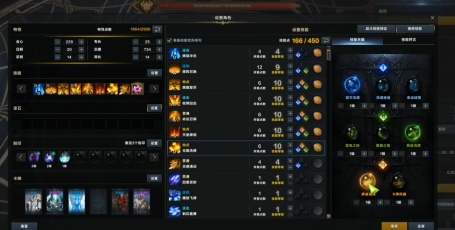 卡牌系统是职业特色之一,通过Z/X键激活储存的卡牌。实用卡牌包括三头蛇(平A叠牌)、命运之轮(刷新技能CD)、星星(回蓝减CD)和审判(强制满层印记)。抽牌随机性要求玩家灵活调整策略,例如幽灵用于位移保命,狂热提升攻速以优化输出循环。刻印推荐皇后恩赐流派,主专长副致命属性,配合怨恨巫毒娃娃侧击大师等通用刻印强化输出。