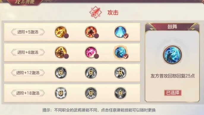 潜能加点是提升司马懿生存能力的关键。+3推荐复苏,半血后回复10%生命,如果对手控制多可以选背水增加免伤。+5选洞察,半血后提高免伤,配合破釜沉舟战魂能让残血司马懿更耐打。+8可以根据阵容选择凯歌或攻袭,如果队伍里有高爆发武将就带凯歌,单核阵容则带攻袭。司马懿的主动技能幽冥计是主要控制手段,优先升级提高沉默几率,被动技能智囊可以均衡加点,终极技能鬼谋根据战斗情况调整,毕竟消耗较大,但控场效果非常强。