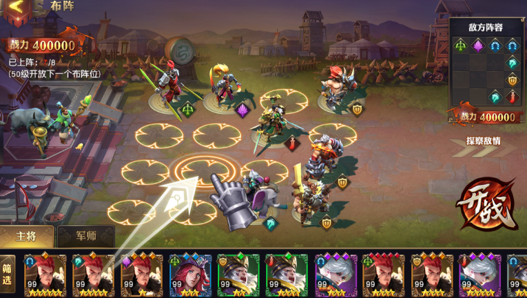 合理利用武将羁绊能大幅提升战斗力。蜀国五虎将、吴国弓手队、魏国盾骑混搭都是经典组合,但别强行凑羁绊而忽略实际战力。前期资源有限,建议集中培养2-3个核心武将,比如主C弓手搭配1-2个前排盾将。中期再根据抽卡情况调整阵容,优先保证前排坦度和后排输出平衡。