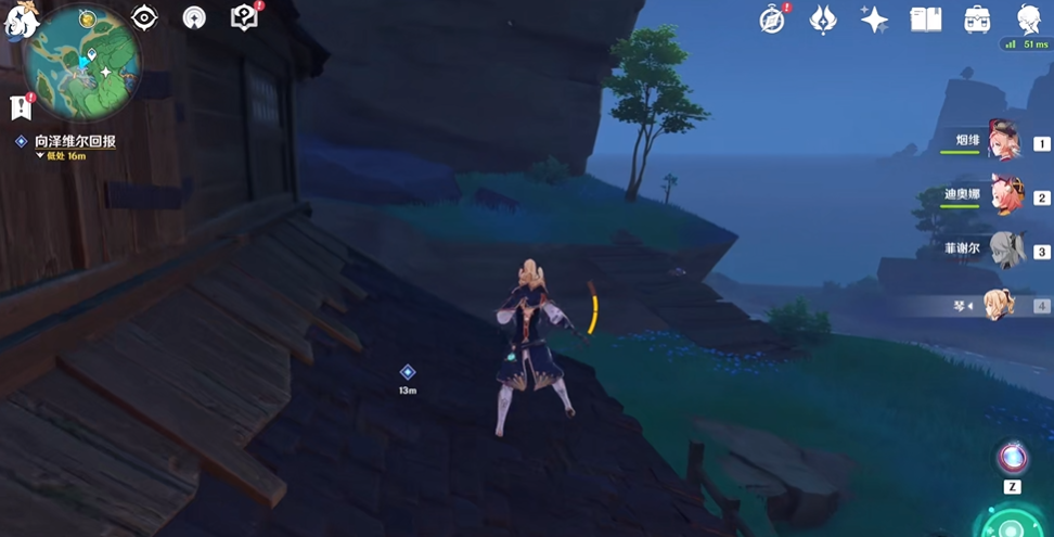 双双岛山顶的海螺位于岛屿最高处的斜坡上,具体位置在地图标记的东北方向。该海螺因地处高崖,需通过攀爬才能到达,建议从岛屿西侧带有绿色藤蔓的山腰处开始攀爬,可节省体