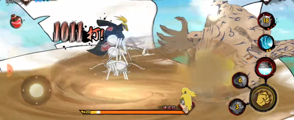 迪达拉的浮空机制是通关核心,尤其在面对交错分布的土流壁时,需在飞行中通过方向键微调位置。当二技能即将结束时,可接普攻延长浮空时间,或使用一技能起爆黏土·爆裂飞龙重新升空。需特别注意BOSS战阶段没有替身机制,一旦被连招命中极易陷入被动。因此建议始终保持中远距离作战,利用黏土飞龙的远程爆炸消耗对手,避免近身缠斗。
