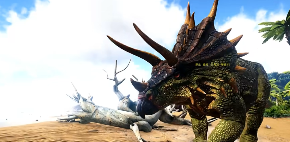 食草类动物中,三角龙是前期不可或缺的伙伴。它能高效采集浆果和茅草,对资源收集帮助极大。驯服时需注意绕圈走位避免被顶撞,使用木棒或麻醉箭击晕后喂食紫色浆果或其他蔬果。剑龙是另一种实用选择,攻击附带击退效果,能快速收集大量浆果,但移动速度较慢,适合定点资源采集。甲龙则专精于矿物采集,尤其是铁矿,对前期金属工具的制作至关重要。