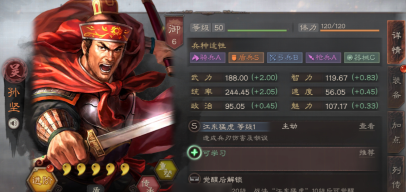 要搭配孙权,得先搞清楚他的老本行。孙权在游戏里是个红品质武将,定位是吴国阵营的单体爆发核心,手头功夫很硬。他的普通攻击就能对单个敌人造成126%的物理伤害,而大