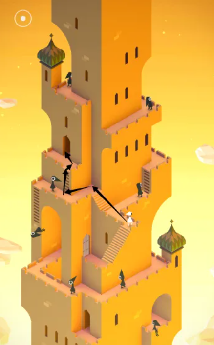 第五关尖塔的核心挑战在于应对新出现的乌鸦人。你需要操控公主艾达,在结构精巧的尖塔迷宫中穿行,同时巧妙地避开这些会来回巡逻的乌鸦人。整个过程充满了空间想象与时机把