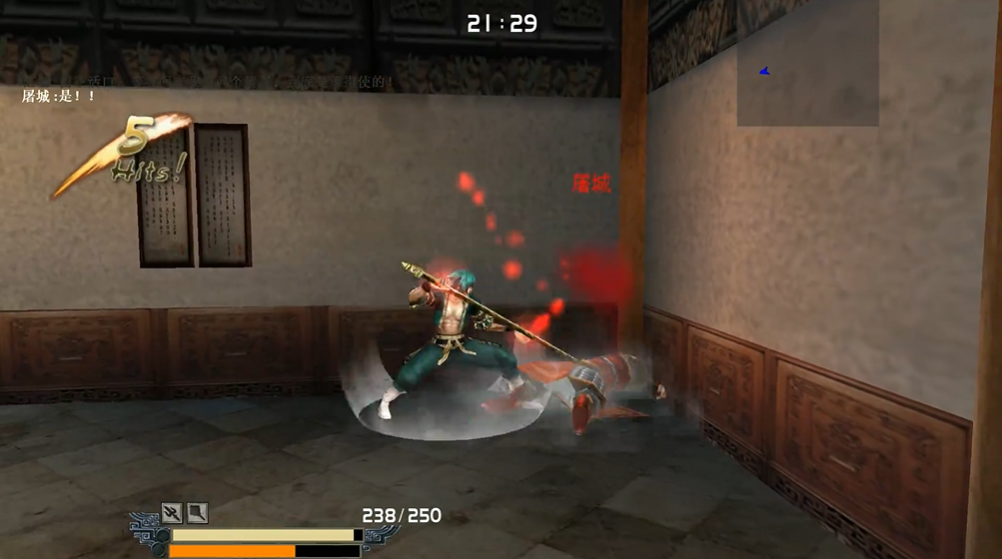 清理完阁楼的敌人,便前往第三层迎来最终决战,对手是屠城和范璇。这场战斗的核心策略是优先击杀屠城,因为他的攻击力极强、范围广,威胁最大,而范璇会在屠城死亡后自动消失。面对屠城时,你需要保持移动,观察他的招式前摇,当他释放威力巨大的必杀技时,迅速躲到柱子后面或利用翻滚进行规避。在攻击间隙,抓住他放完技能的僵直期,用金枪进行猛攻。如果在决战阶段触发了蒙面人增援,应退回走廊利用地形卡位,避免陷入被前后夹击的困境。