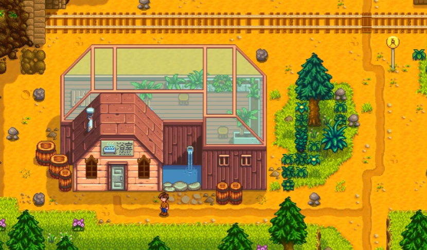 从玩家的农场出发,向北移动穿过星露镇,通过社区中心右侧的桥梁后沿铁轨前进,沿着这条路线一直走就能找到温泉入口。玩家会经过鱼店和约阿哈特的家,然后看到悬崖,沿着右边的小路继续行走,通过火车站区域后向西拐,温泉建筑便位于铁道区域的左下角。