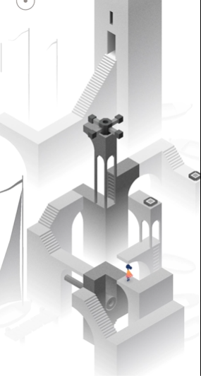 通过向右转动操控点调整建筑形态,让萝尔走到道路尽头。之后她会进入一个门,并从上方另一个门出来。此时需要再次转动操控点,将她移动到新的位置,并通过旋转建筑构成楼梯,让她能够向上攀登。经过几次旋转,引导她进入最后的门,就会来到最终的场景。